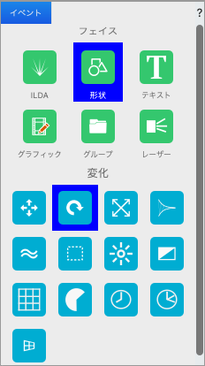 イベントには、 フェイスと変化の2種類があります 。フェイスは 素材になる物で、この素材を色々な形に変化させる物が変化になります。